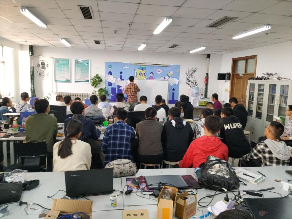 创新精英研究院机器人创新实验室。张啸天同学在上午七点在主楼1308教室进行了C语言和51单片机的培训,培训于上午7:00开始。结束于上午9:00。期间,双方互动,同学提问,培训进行的非常顺利