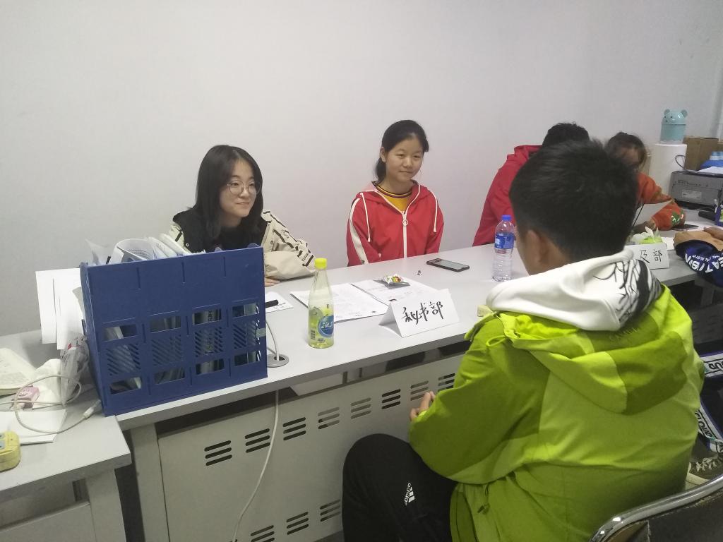 10月15日晚7时至10时,创新精英研究院学生综合管理办公室各部门对有志于加入办公室的大一新生进行了面试。