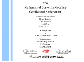 2020年,获“国际大学生数学建模竞赛”特等奖(Outstanding Winner)