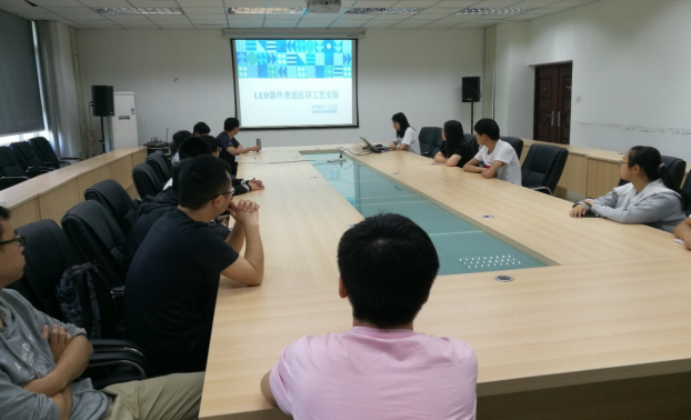 鹿慧敏同学结合自己所做毕业设计内容,讲述了“LED器件表面压印工艺实验”,分别从限制LED器件发光效率的因素、提高LED发光效率、压印工艺实验等不同方面展开讲述。