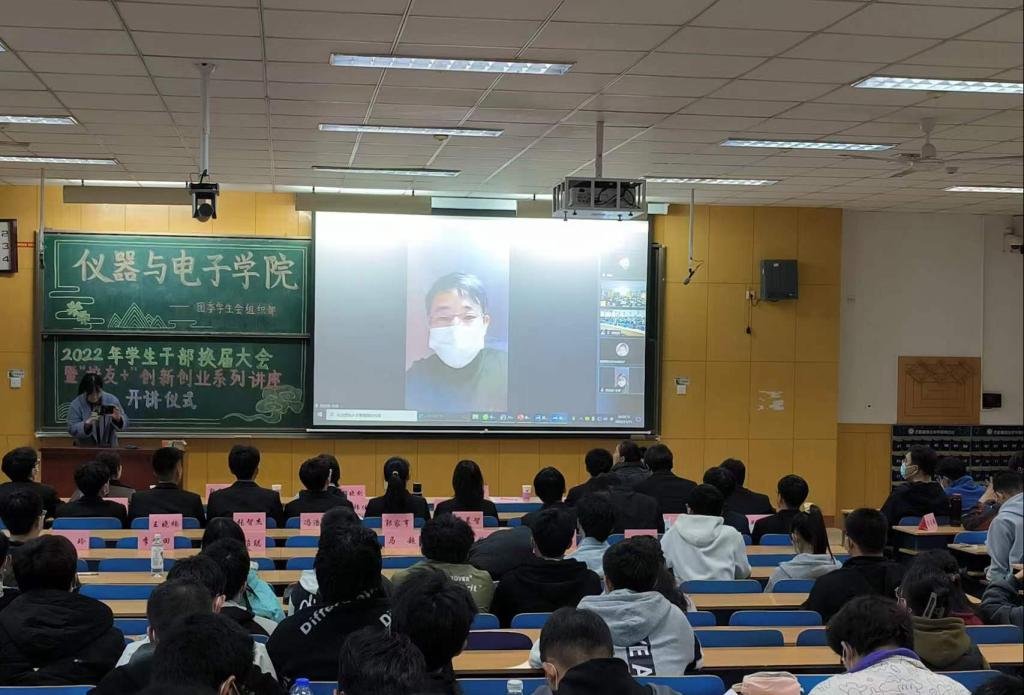 在11408H举行了2022年学生会干部换届大会暨“校友+”创新创业系列讲座第一讲。院党委书记郝晓剑、副书记杜瑞平,金沙