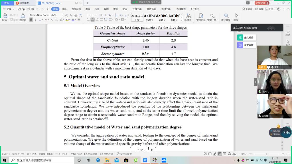 今年的美赛建模情况比较特殊,由于疫情的严重性,尽管我们选择了美国竞赛主办方给出的第二个周末参赛,还是没能够队友之间面对面交流参赛。这给了我们很大的挑战,在克服交流障碍的基础上,我们的线上交流合作非常成功。官网发题的前一天,我们格外认真的交流讨论了一下关于比赛期间的时间安排,和分工合作。落实到起床时间和吃饭时间,我们都有做说明,而且每个人各有所长,我们大致安排了一下每个人的工作重心和比比赛期间进度安排,互相嘱咐及时交流,多次强调了交流的重要性,尤其在这种线上更为重要。第一个周末的题目出来之后我们分析过题目,交流各自的想法,大概说了一下题目的要求及可以用到的我们接触过的基础模型。