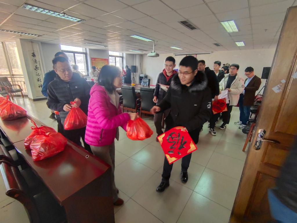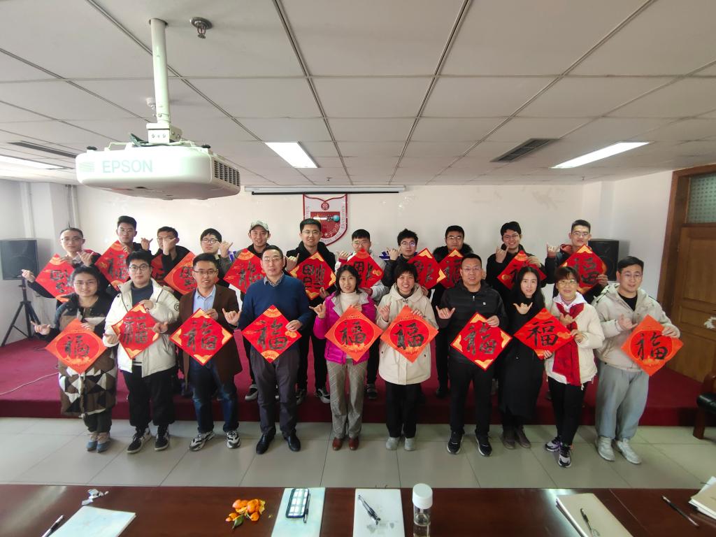 领导、研究生导师、辅导员、班主任与因为疫情、科研等原因选择留校过年的15名同学欢聚一堂。