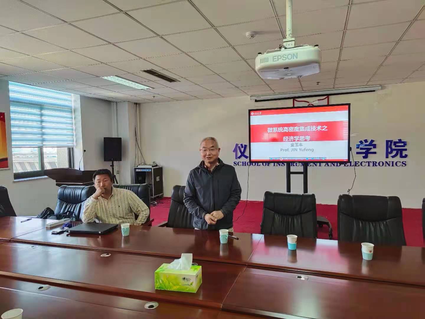 金玉丰教授围绕《微系统高密度集成系统之经济学思考》主题开展讲座,主要从经济学的角度分析了微系统高密度集成技术所带来的益处,介绍了微纳加工技术的国内外现状和未来发展趋势,从经济学角度为广大学生提了诸多可行的建议;时广轶副教授做了以《惯性传感技术,从应用到器件》为题的学术报告,并就自己的研究方向等方面进行了全面的交流。最后金玉丰教授和时广轶副教授与现场师生亲切座谈,解疑答惑。