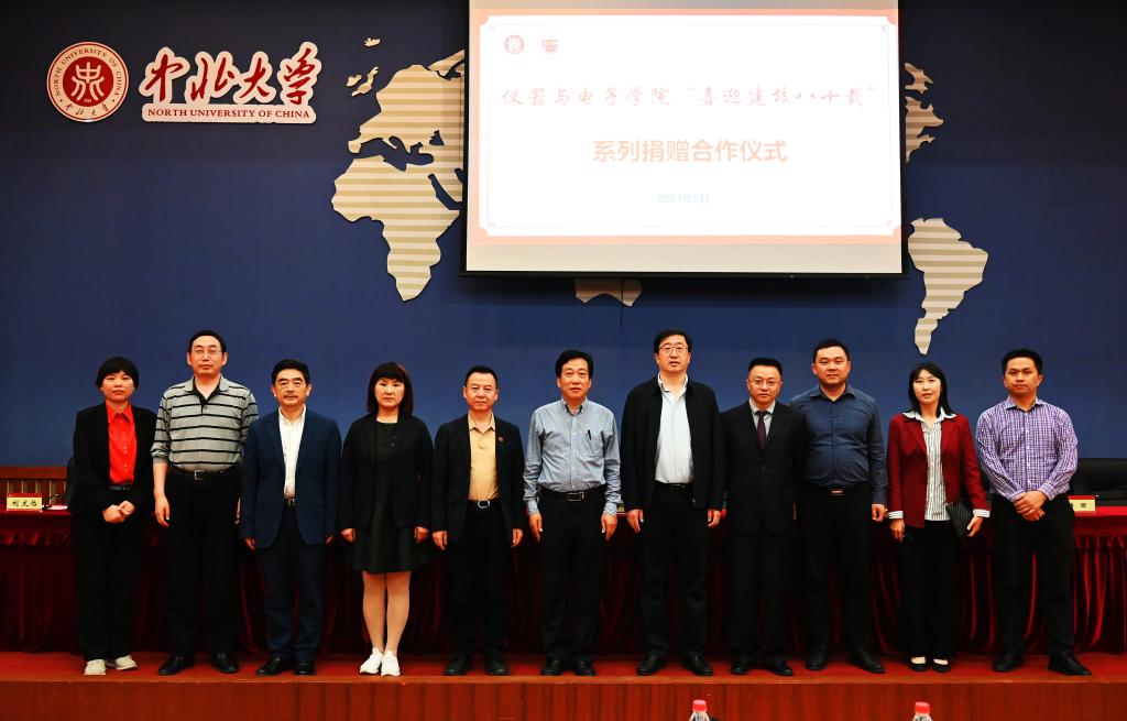 捐赠仪式上,88级校友、上海中用仪器科技有限公司总经理王景忠代表公司向母校捐赠题字“八十华诞逢盛世,仪电桃李竞芬芳;长征嫦娥游太空,北斗天文神通广;励精图治谱华章,争创一流更辉煌”献礼母校80华诞。