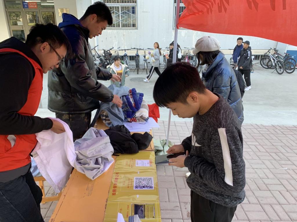 活动期间,捐赠点热闹非凡,同学们纷纷带来闲置的衣物献出自己的爱心。尽管寒风凛冽,但志愿者们依旧坚守岗位,合理分配登记与接收工作,热情接待每一位捐助的同学,并向他们表示真诚的感谢。对于前来咨询捐赠事宜同学,志愿者们耐心的回答他们的问题。同学们也积极响应,不仅捐出自己的衣物,还号召身边的朋友一起捐赠。14日下午五点左右,活动接近尾声,志愿者们把衣物进行最终的整理与分类,并清扫活动现场,此次活动圆满结束。