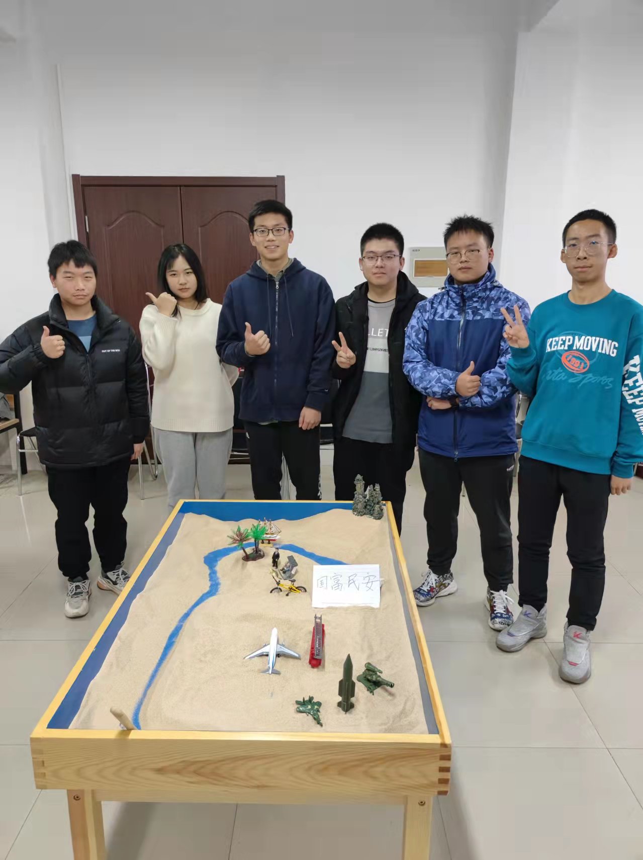 老师带领每位成员进行生涯规划,并分组设计了“居安思危”、“和谐美好”、“国富民安”三幅沙盘,引导学生将自己的小我融入祖国的大我之中,在为祖国、人民的奋斗中实现青春价值,放飞青春梦想。
