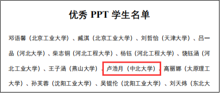 4位同学全部获得优秀论文奖,也是整个山西仅有的四篇优秀论文;另外,卢浩月同学还获得优秀PPT奖。