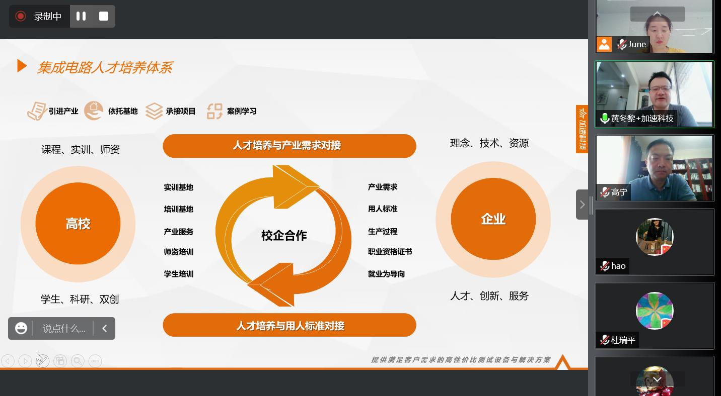 的集成电路科学与工程从培养方案、课程设置等方面进行交流。杭州加速科技有限公司产品总监黄冬黎、市场总监高宁分别就企业的产业政策、人才培养方案以及人才培养的案例进行分析。