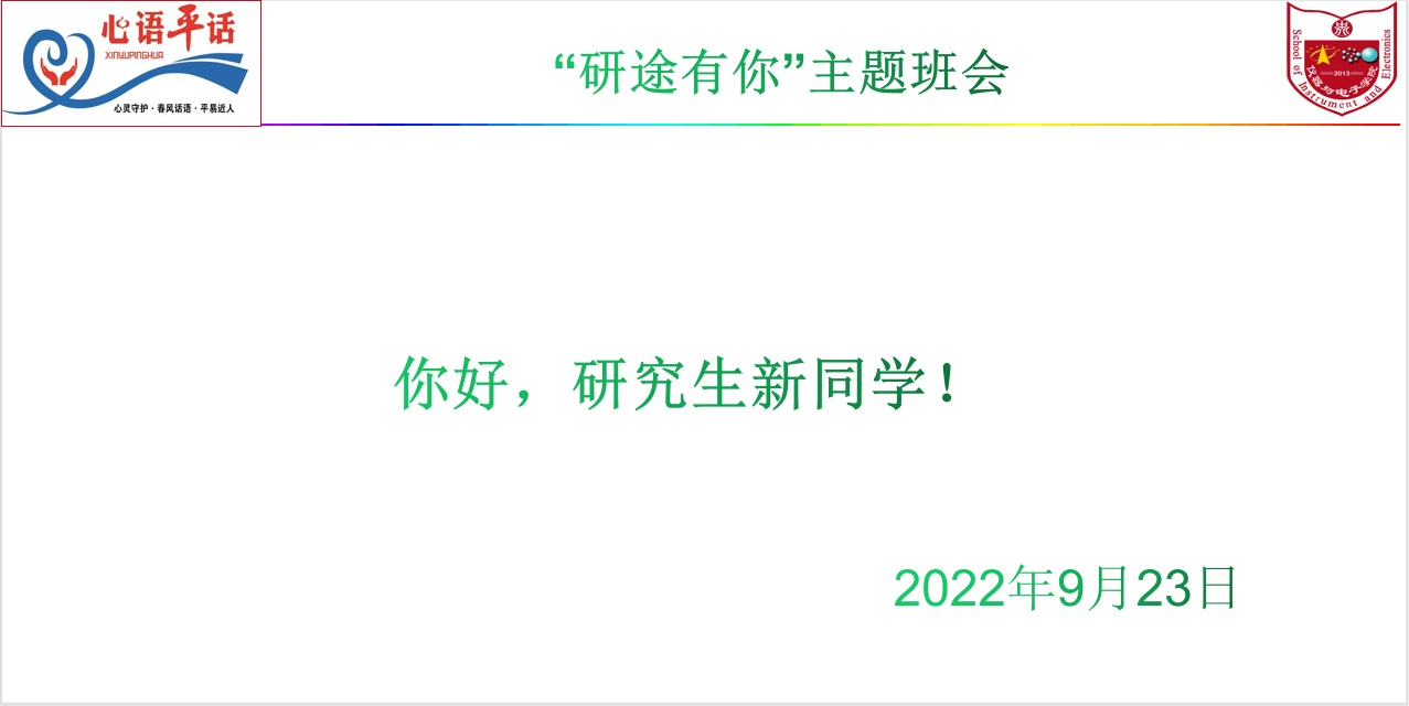 “心语平话”辅导员工作室为461名研究生新同学举行“研途有你”主题班会。工作室邀请金沙
