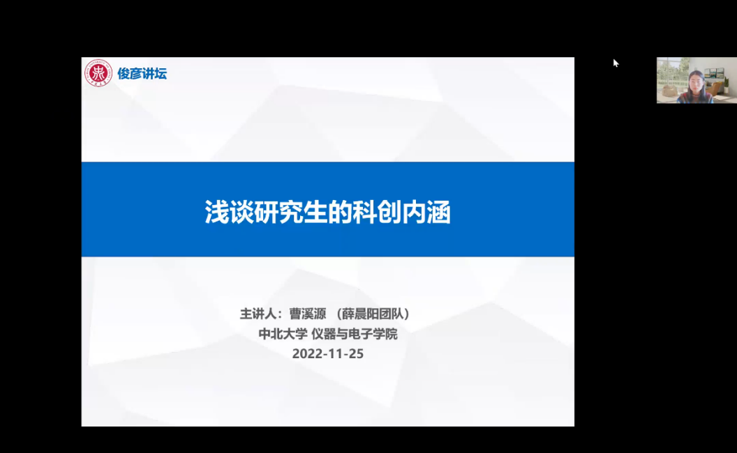 在科创内涵的详细论述中,曹老师鼓励同学们在研究生阶段自学,同时利用自身优势对信息进行检索,归类。同时曹老师提出了独行快,众行远的科研理念,做好同课题组的学术传承。
