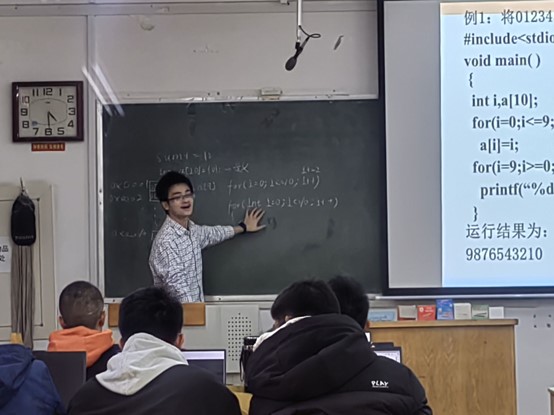 本次培训主要由实验室副主席游逸飞主持,23级的同学们参加了本次科普培训。游逸飞先是带领大家复习巩固了一下循环的知识,然后重点讲解了一维数组和二维数组,并介绍了冒泡排序法等排序算法。因为这部分内容有难度,所以游逸飞在讲解完C语言的相关知识后,和大家一起编写了一些基本的程序并使之运行,让大家对这部分内容有了更深刻的了解。随后游逸飞在洛谷团队上发布了一些课后测试,并要求大家完成后向自己的组长汇报,由各组组长检查监督作业完成情况。