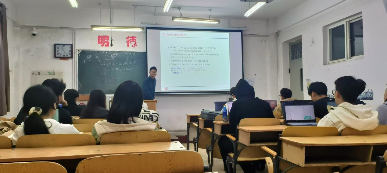 本次培训主要由实验室主席游逸飞主持,24级的同学们参加了本次科普培训。游逸飞向24级的同学们讲解了C语言的If语句、for语句、while语句。在讲解完C语言的相关知识后,游逸飞引领大家写出了一些基本的程序并使之运行。游逸飞同学的教学风格和游逸飞同学有所不同,游逸飞同学讲课时幽默风趣,时常通过一些段子来让大家更好地理解一些知识。课下还是由主席游逸飞在洛谷团队上发布了一些课后测试,并要求大家完成后向自己的组长汇报,由各组组长检查监督作业完成情况,并解决他们在课下遇到的问题,让他们更好地巩固培训所学知识。