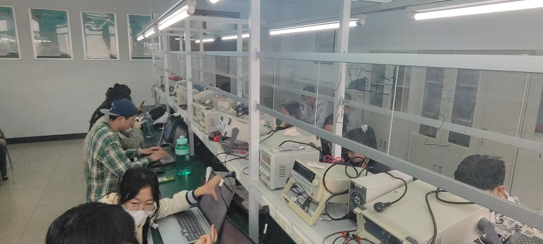 从4月8日开始,同学们以小组的形式在主楼1117进行线下实训,系统学习了压力传感器的采集、放大、滤波电路的基本原理,对涉及的电路进行仿真分析,同时自主进行传感器方案的设计、传感器的选型以及电阻电容参数的选取,并最终进行multisim电路仿真以及PCB的绘制。