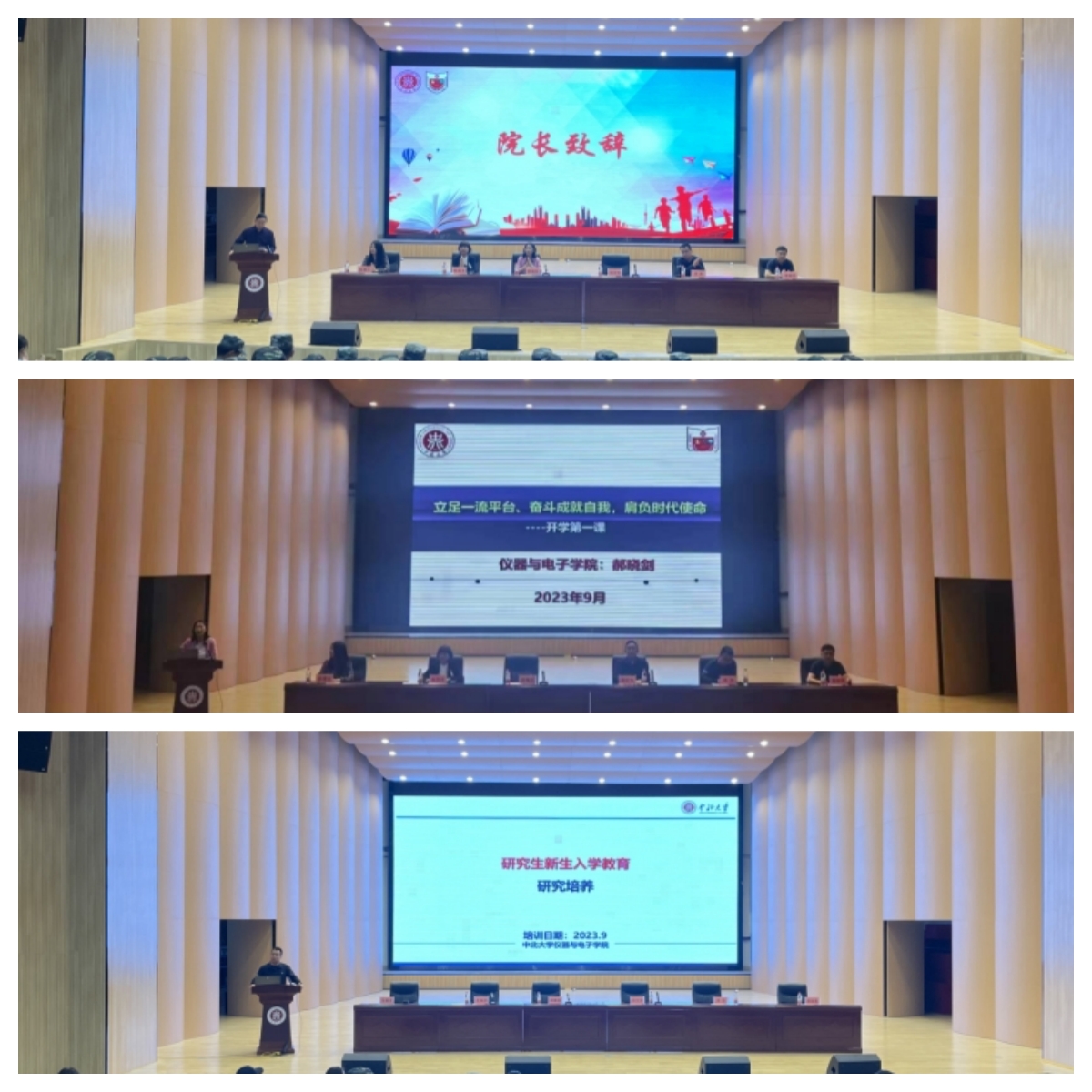 获得2023年国家自然科学青年基金的教师代表李楠、保送至清华大学直博的在校生代表侯帅鹏、硕博连读的新生代表李皓璇与新生同学讲理想信仰、谈人生规划、谋成长成才。