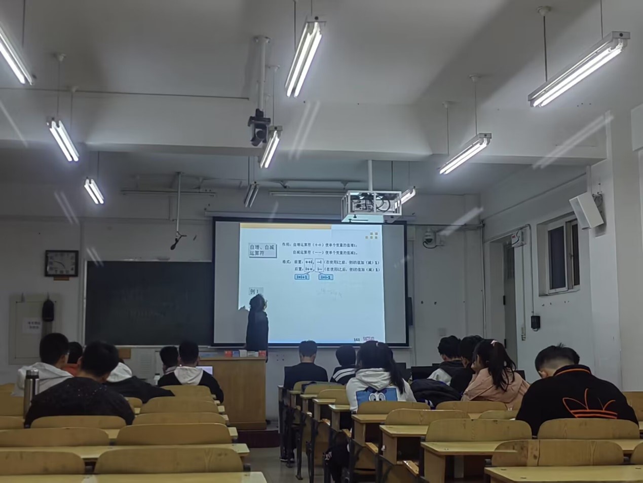 本次培训主要由实验室副主席游逸飞主持,23级的同学们参加了本次科普培训。游逸飞向23级的同学们讲解了C语言的算术运算符和算术表达式、赋值运算符和赋值表达式、逗号运算符和逗号表达式、选择结构程序设计中的关系运算符和关系表达式、逻辑运算符和逻辑表达式以及If语句。在讲解完C语言的相关知识后,游逸飞引领大家写出了一些基本的程序并使之运行。由于第一次利用If语句写代码,大家在课堂上出现了许多问题。于是,游逸飞利用课间休息时间对大家的疑问进行了详细解答。通过当堂辅导,游逸飞帮助大家快速地掌握了本节课的C语言知识,并解决了他们关于C语言知识上的问题,与此同时也激发了大家学习C语言的热情。最后,游逸飞在洛谷团队上发布了一些课后测试,并要求大家完成后向自己的组长汇报,由各组组长检查监督作业完成情况,并解决他们在课下遇到的问题,让他们更好地巩固培训所学知识。