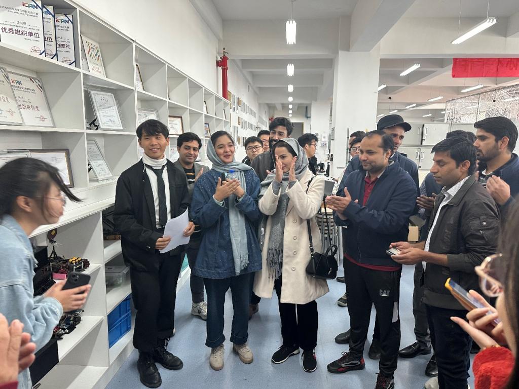 大家的交流氛围十分融洽。留学生们不仅参观了鸿蒙生态&IOT创新实验室,实验室成员还向他们介绍了iCAN社团和其他的几个实验室。同学们也和他们进行友好交流,虽然同学们的英语口语交流略有不足,但是对此次活动他们已经做足准备,把自己和实验室最好的一面展现出来。通过与巴基斯坦留学生的交流,同学们对自己的研究方向和未来发展有了更明确的认识,为他们走向国际舞台奠定了坚实的基础。