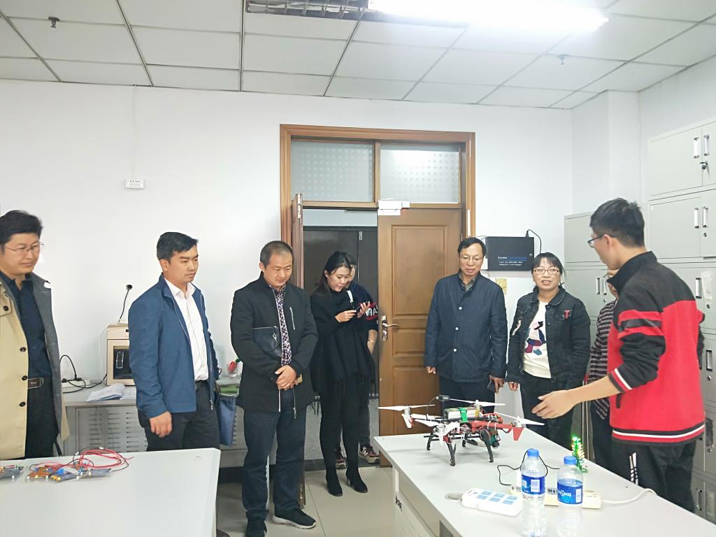 学生的讲解下了解了创新精英研究院近年来的发展状况,以及在全国各大竞赛所取得的优异成绩。对各个实验室的特色以及同学们的自主创新作品有所了解之后,各位领导对研究院培养本科同学的动手能力的方式提出了称赞。