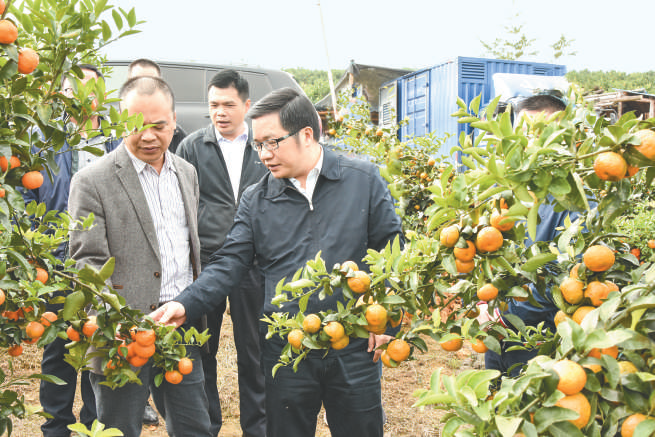 黎晓华(前排右一)到凤岗镇调研沙糖桔种植基地发展。