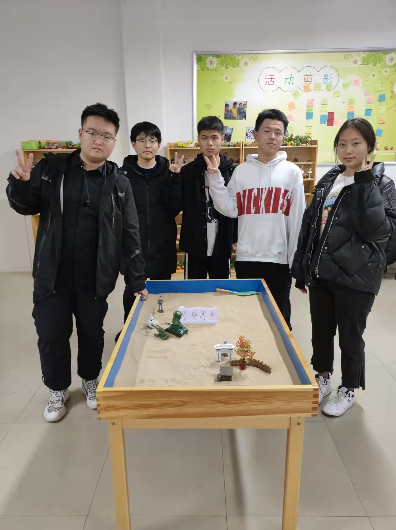 老师带领每位成员进行生涯规划,并分组设计了“居安思危”、“和谐美好”、“国富民安”三幅沙盘,引导学生将自己的小我融入祖国的大我之中,在为祖国、人民的奋斗中实现青春价值,放飞青春梦想。