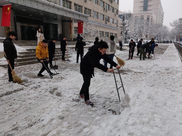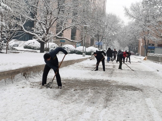党委响应校党委的号召,组织各支部党员、发展对象和积极分子同志,对科研楼、14号楼、重点实验室周边及道路开展了“清扫校园积雪,创设美好环境”主题党日活动,确保道路的畅通,方便师生出行。